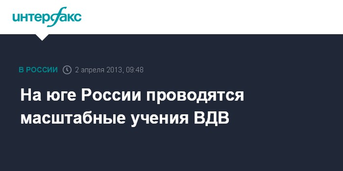 Москва. 2 апреля. INTERFAX.RU - В Краснодарском крае начались крупномасштабные командно-штабные учения десантно-штурмовой (горной) дивизии Воздушно-десантных войск, сообщил "Интефаксу-АВН" во вторник официальный представитель ВДВ полковник Александр Кучеренко.