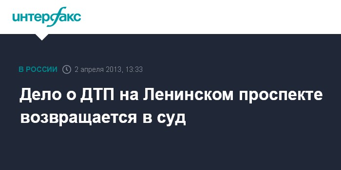 Москва. 2 апреля. INTERFAX.RU - Уголовное дело о ДТП на Ленинском проспекте, произошедшем в феврале 2010 года, направлено в суд, сообщила "Интерфаксу" официальный представитель Главного следственного управления ГУ МВД России по Москве Елена Молотилкина.