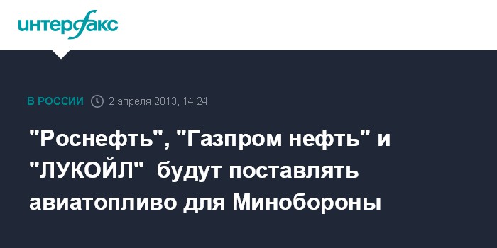 Москва. 2 апреля. INTERFAX.RU - "Роснефть", "Газпром нефть", "ЛУКОЙЛ" и "Аэрофьюэлз" станут в ближайшие два года поставщиками авиатоплива для Вооруженных Сил РФ.