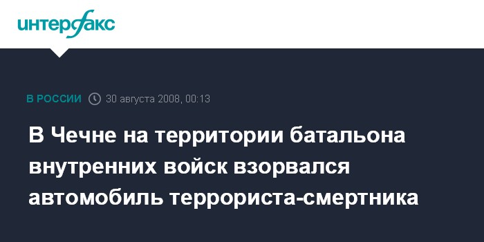 В Чечне на территории батальона внутренних войск взорвался автомобиль террориста-смертника