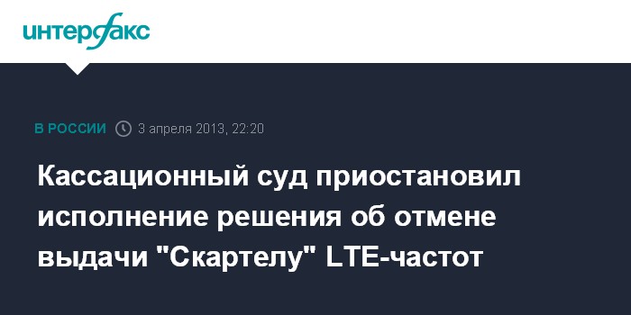 Кассационный суд приостановил исполнение решения об отмене выдачи "Скартелу" LTE-частот