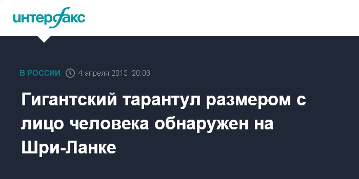 Лондон. 4 апреля. INTERFAX.RU - Новый вид паукообразных - тарантулов, отличающихся огромными размерами и необычным светло-серым окрасом, обнаружен местными исследователями на севере Шри-Ланки, сообщает британский телеканал Sky News.