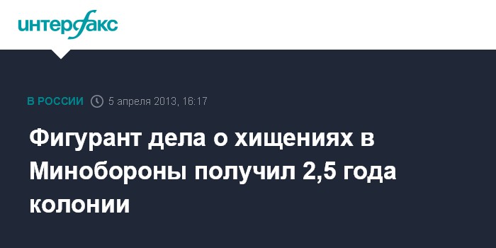 Фигурант дела о хищениях в Минобороны получил 2,5 года колонии
