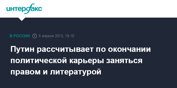 Путин рассчитывает по окончании политической карьеры заняться правом и литературой