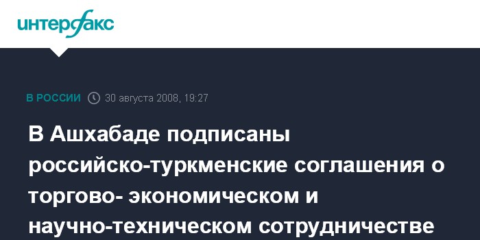 В Ашхабаде подписаны российско-туркменские соглашения о торгово- экономическом и научно-техническом сотрудничестве