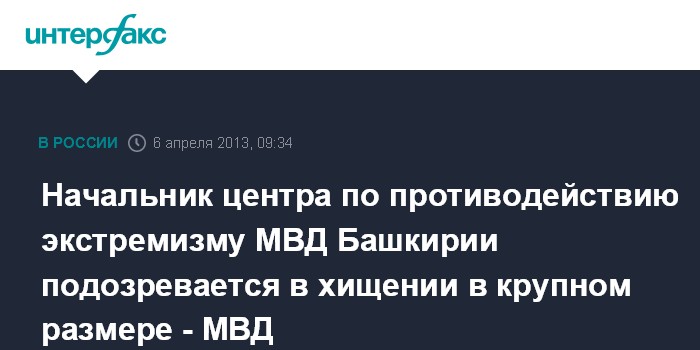 Начальник центра по противодействию экстремизму МВД Башкирии подозревается в хищении в крупном размере - МВД