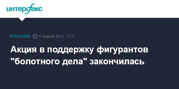Москва. 6 апреля. INTERFAX.RU - Митинг оппозиции в поддержку арестованных по уголовному делу о беспорядках на Болотной площади 6 мая прошлого года завершился вечером в субботу в центре Москвы без происшествий и инцидентов.