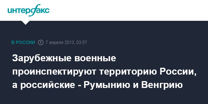 Зарубежные военные проинспектируют территорию России, а российские - Румынию и Венгрию