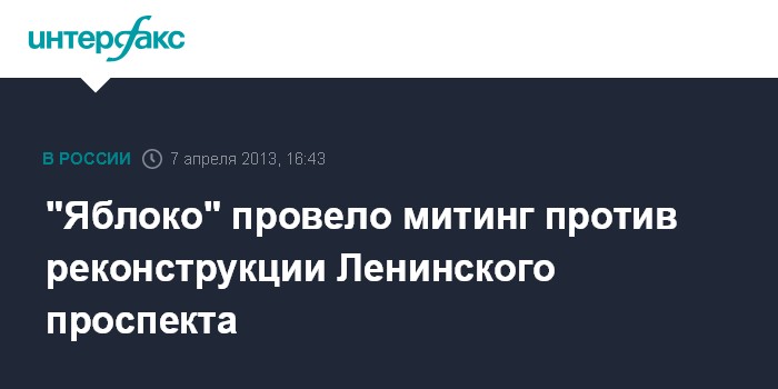 Москва. 7 апреля. INTERFAX.RU - В Москве прошел организованный партией "Яблоко" митинг против планов властей по реконструкции Ленинского проспекта.