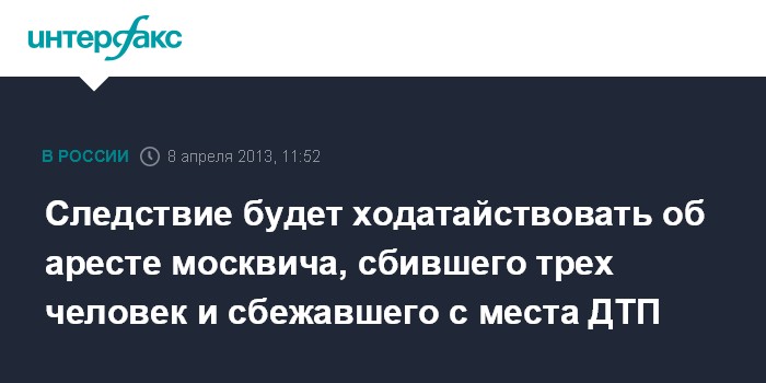 Москва. 8 апреля. INTERFAX.RU - Уголовное дело возбуждено в отношении водителя иномарки, сбившего накануне трех человек в Москве, среди которых была беременная женщина, скончавшаяся от полученных травм, сообщили "Интерфаксу" в пресс-службе ГУ МВД России по Москве.