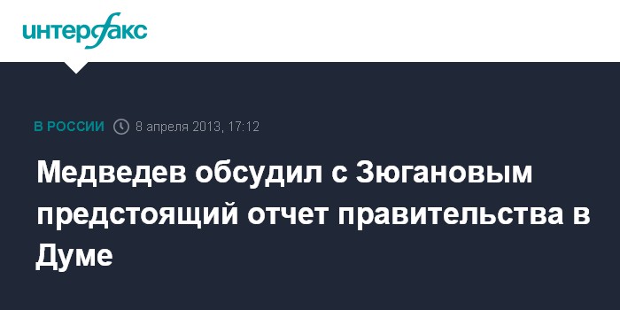 Беседа с Зюгановым открыла серию встреч премьер-министра с лидерами думских фракций в преддверии его выступления в Госдуме, отметили в пресс-службе кабинета министров.депутатами на посту председателя правительства.