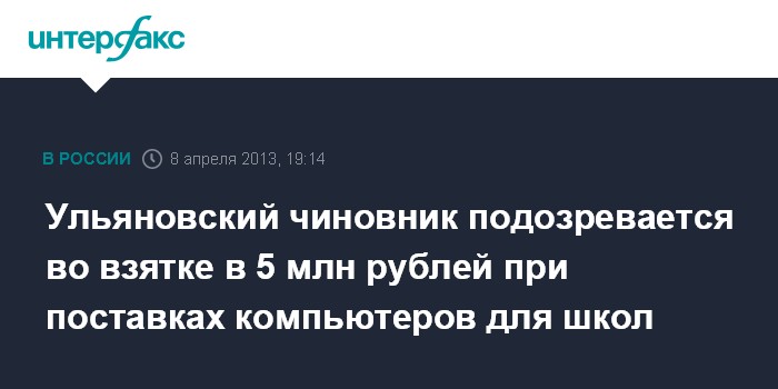 Ульяновский чиновник подозревается во взятке в 5 млн рублей при поставках компьютеров для школ
