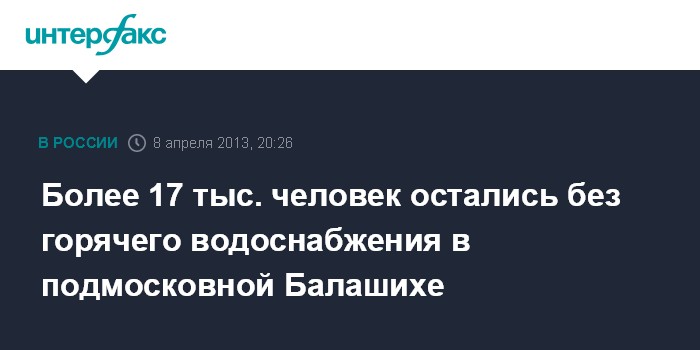 Москва. 8 апреля. INTERFAX.RU - В подмосковной Балашихе без горячей воды остались жители 35 жилых домов, сообщает ГУ МЧС России по Московской области.