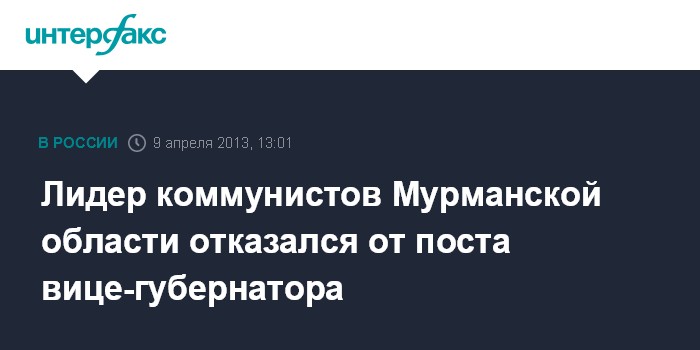 Мурманск. 9 апреля. INTERFAX.RU - Первый секретарь мурманского отделения КПРФ Геннадий Степахно отклонил предложение главы региона Марины Ковтун занять пост вице-губернатора.