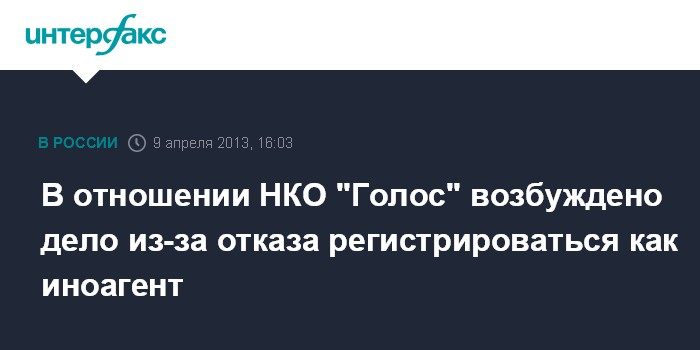В отношении НКО "Голос" возбуждено дело из-за отказа регистрироваться как иноагент