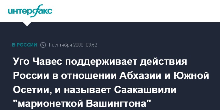 Уго Чавес поддерживает действия России в отношении Абхазии и Южной Осетии, и называет Саакашвили "марионеткой Вашингтона"