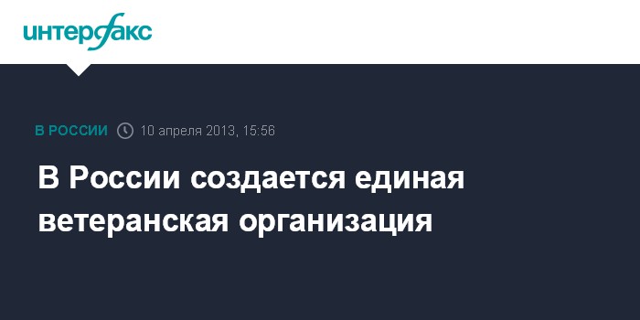 Москва. 10 апреля. INTERFAX.RU - Общероссийская общественная организация под названием "Российский союз ветеранов" (РСВ), в который войдут все категории ветеранского сообщества, включая участников Великой Отечественной войны, объединятся в единую структуру.