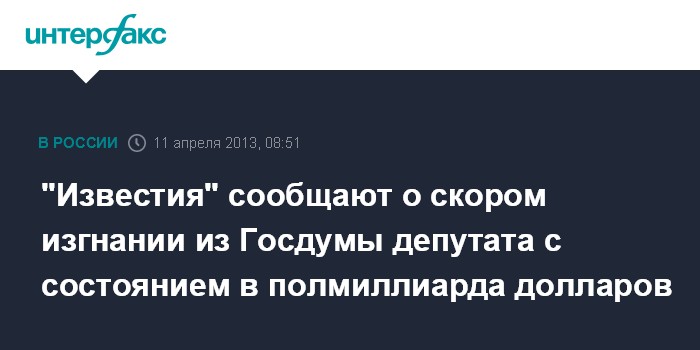 "Известия" сообщают о скором изгнании из Госдумы депутата с состоянием в полмиллиарда долларов
