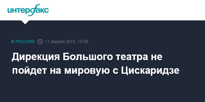 Москва. 11 апреля. INTERFAX.RU - Администрация Большого театра отказалась предложить танцору Николаю Цискаридзе мировое соглашение, сообщила в четверг "Интерфаксу" представитель Большого театра Алина Кудрявцева.
