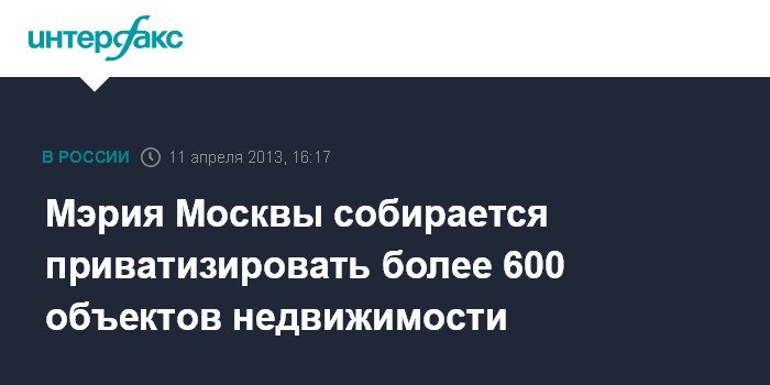 Мэрия Москвы собирается приватизировать более 600 объектов недвижимости