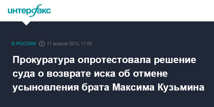 Прокуратура опротестовала решение суда о возврате иска об отмене усыновления брата Максима Кузьмина