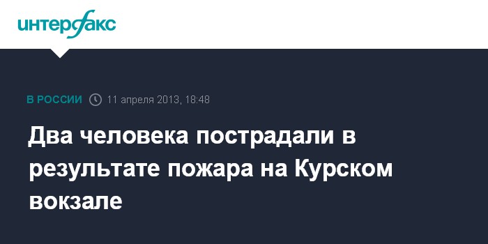 Москва. 11 апреля. INTERFAX.RU - В результате пожара на компрессорной станции на Курском вокзале пострадали два человека, сообщил "Интерфаксу" источник в правоохранительных органах.