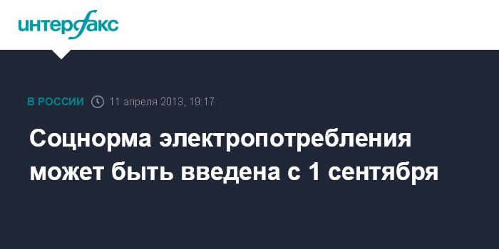 Соцнорма электропотребления может быть введена с 1 сентября