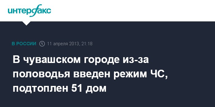 Чебоксары. 11 апреля. INTERFAX.RU - Режим ЧС введен на территории г. Алатырь (Чувашия) с 20.00 мск четверга постановлением администрации города.