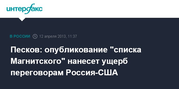 Песков: опубликование "списка Магнитского" нанесет ущерб переговорам Россия-США