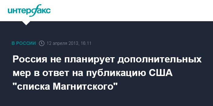 Россия не планирует дополнительных мер в ответ на публикацию США "списка Магнитского"