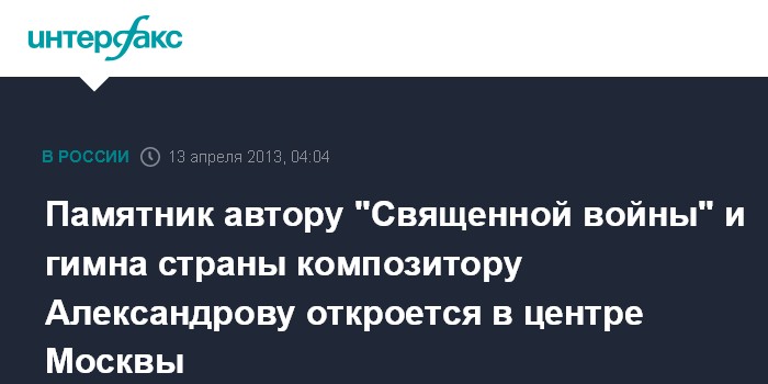 Там уточнили, что монумент открывается в день 130-летия со дня рождения композитора, дирижера, педагога, народного артиста СССР, лауреата Ленинской и Сталинской премий, Героя социалистического труда, основателя легендарного ансамбля песни и пляски, автора музыки государственного гимна СССР и России и бессмертной песни "Священная война" ("Вставай, страна огромная…").