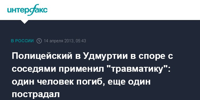 Полицейский в Удмуртии в споре с соседями применил "травматику": один человек погиб, еще один пострадал