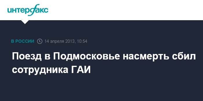 Москва. 14 апреля. INTERFAX.RU - Сотрудник ГИБДД погиб под колесами поезда в Раменском районе Московской области, сообщили "Интерфаксу" в пресс-службе ГУ МВД России по Московской области в воскресенье.