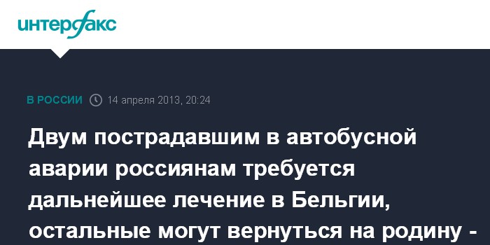 Двум пострадавшим в автобусной аварии россиянам требуется дальнейшее лечение в Бельгии, остальные могут вернуться на родину - МИД РФ