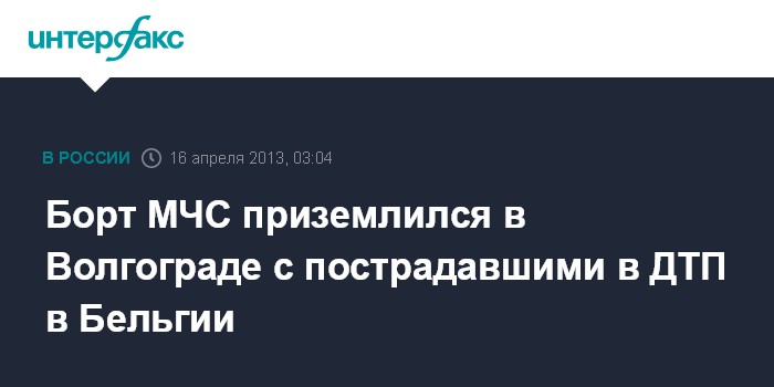 Волгоград. 16 апреля. ИНТЕРФАКС-ЮГ - Самолет Ил-76 МЧС РФ доставил в Волгоград туристов, пострадавших в ДТП вблизи бельгийского города Антверпена.