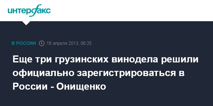 Ранее глава Роспотребнадзора заявил "Интерфаксу", что поставки грузинского вина могут начаться в апреле.