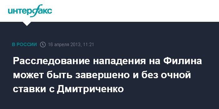 "Очная ставка между Филиным и Дмитриченко не имеет принципиального значения при расследовании уголовного дела. После медицинского заключения из Германии о степени тяжести травм, нанесенных Филину, расследование дела может быть полностью завершено", - сказал источник.