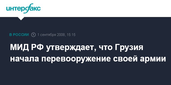 Москва. 1 сентября. INTERFAX.RU - У российских властей есть сведения, что Грузия уже начала перевооружение своих вооруженных сил, сообщил официальный представитель МИД РФ Андрей Нестеренко.