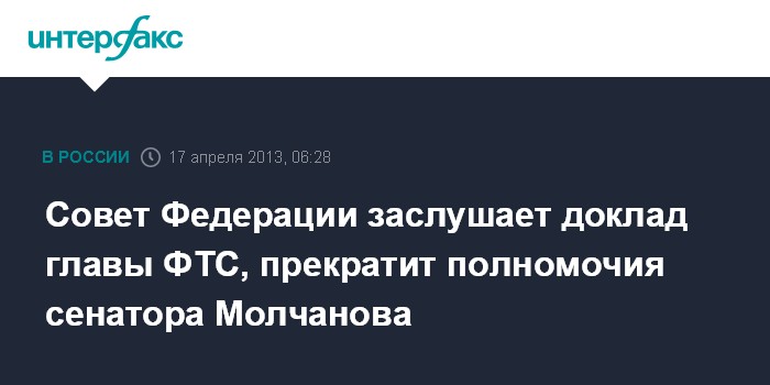 Совет Федерации также досрочно прекратит сенаторские полномочия Андрея Молчанова, который занимает должность главы комитета верхней палаты по экономической политике. Досрочно полномочия снимаются с А.Молчанова по его личной просьбе.