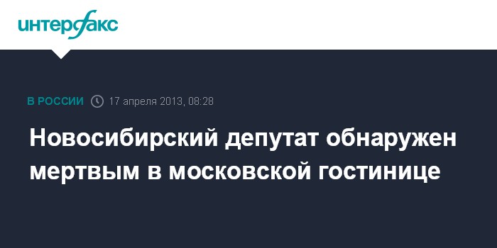 Москва. 17 апреля. INTERFAX.RU - Тело депутата законодательного собрания Новосибирской области найдено в гостинице в центре Москвы, сообщил "Интерфаксу" источник в правоохранительных органах.