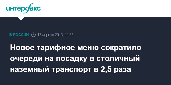 17 апреля. INTERFAX.RU - Новое тарифное меню сократило очереди на посадку в наземный городской транспорт в 2,5 раза, заявил глава столичного департамента транспорта и дорожно-транспортной инфраструктуры Максим Ликсутов "Интерфаксу".