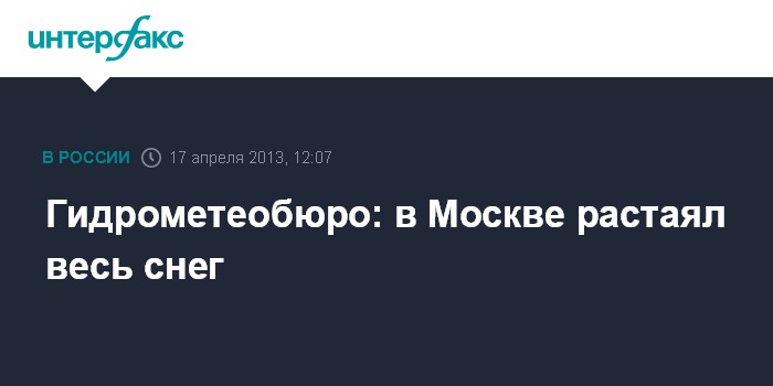 Москва. 17 апреля. INTERFAX.RU - Снежный покров к утру среды в столице полностью растаял, сообщили "Интерфаксу" в Гидрометеобюро Москвы и Московской области.