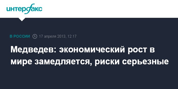 Москва. 17 апреля. INTERFAX.RU - Тенденция замедления экономического роста сохраняется, заявил премьер-министр Дмитрий Медведев.