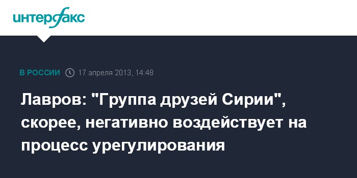 Стамбул. 17 апреля. INTERFAX.RU - Деятельность "группы друзей Сирии" не способствует политическому урегулированию в этой стране, заявил глава МИД РФ Сергей Лавров.