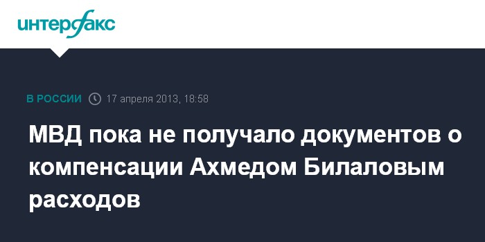 МВД пока не получало документов о компенсации Ахмедом Билаловым расходов