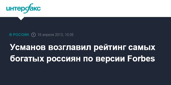 Москва. 18 апреля. INTERFAX.RU - Журнал Forbes в четверг утром опубликовал десятый в своей истории рейтинг самых богатых людей России.