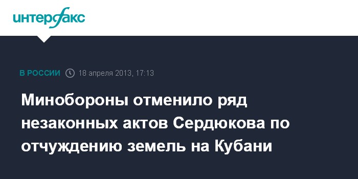Минобороны отменило ряд незаконных актов Сердюкова по отчуждению земель на Кубани