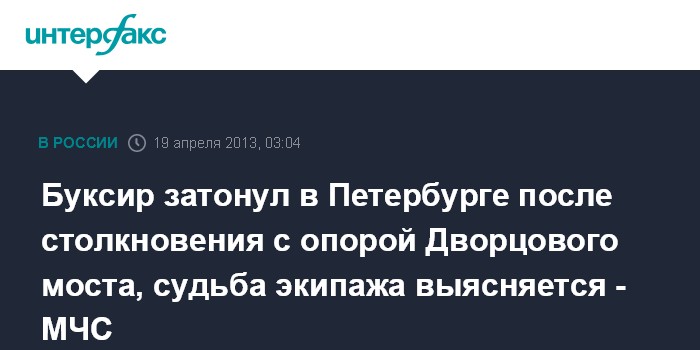 Буксир затонул в Петербурге после столкновения с опорой Дворцового моста, судьба экипажа выясняется - МЧС
