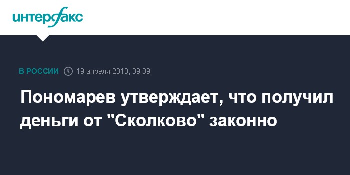 Пономарев утверждает, что получил деньги от "Сколково" законно