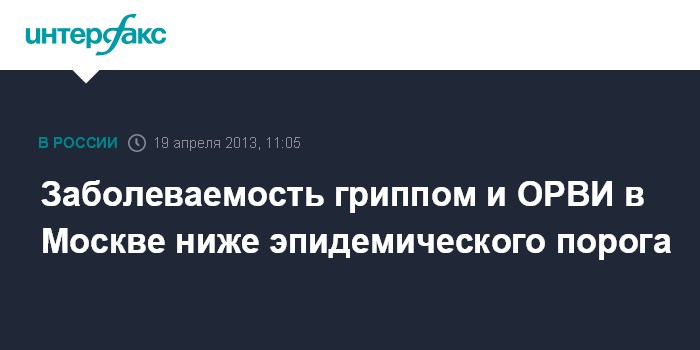 Москва. 19 апреля. INTERFAX.RU - Заболеваемость ОРВИ и гриппом в Москве за 15-ю неделю года, с 8 по 14 апреля, снизилась на 7,5% по сравнению с предыдущей неделей, сообщает официальный представитель столичного управления Роспотребнадзора в пятницу. Кроме того, заболеваемость ОРВИ и гриппом в Москве также на 2,5% ниже уровня заболеваемости аналогичной недели 2012 года, говорится в сообщении.